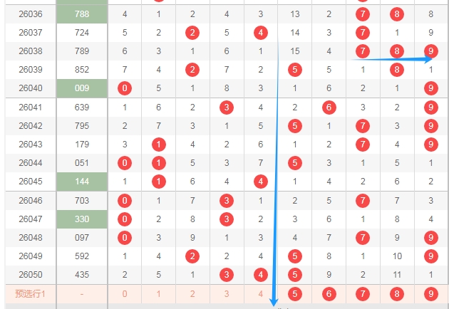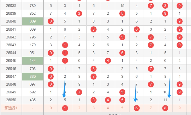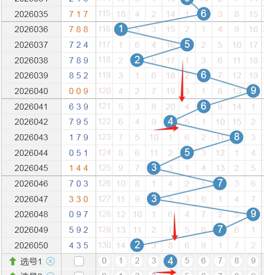 上图是体彩排列三开奖号码走势分布图,我在上面走势图中标注出来的数字都是偶数数字02468,你们看看上面走势图中标注出来的蓝色小箭头就知道,最近开出的奇数数字多,开出的偶数数字少,上期又开出了两个奇数一个偶数组合,那么本期偶数数字02468至少要看出一个或者两个,小心出三个,最近十几期出偶数太少了,一次性开出三个偶数也是可以的。