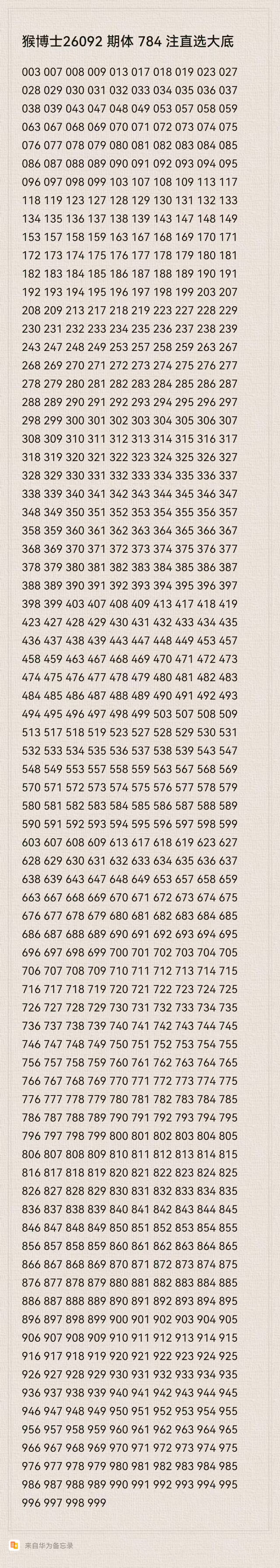 猴博士26092期排列三784注直选大底:(可以当母底用,然后进行缩水)