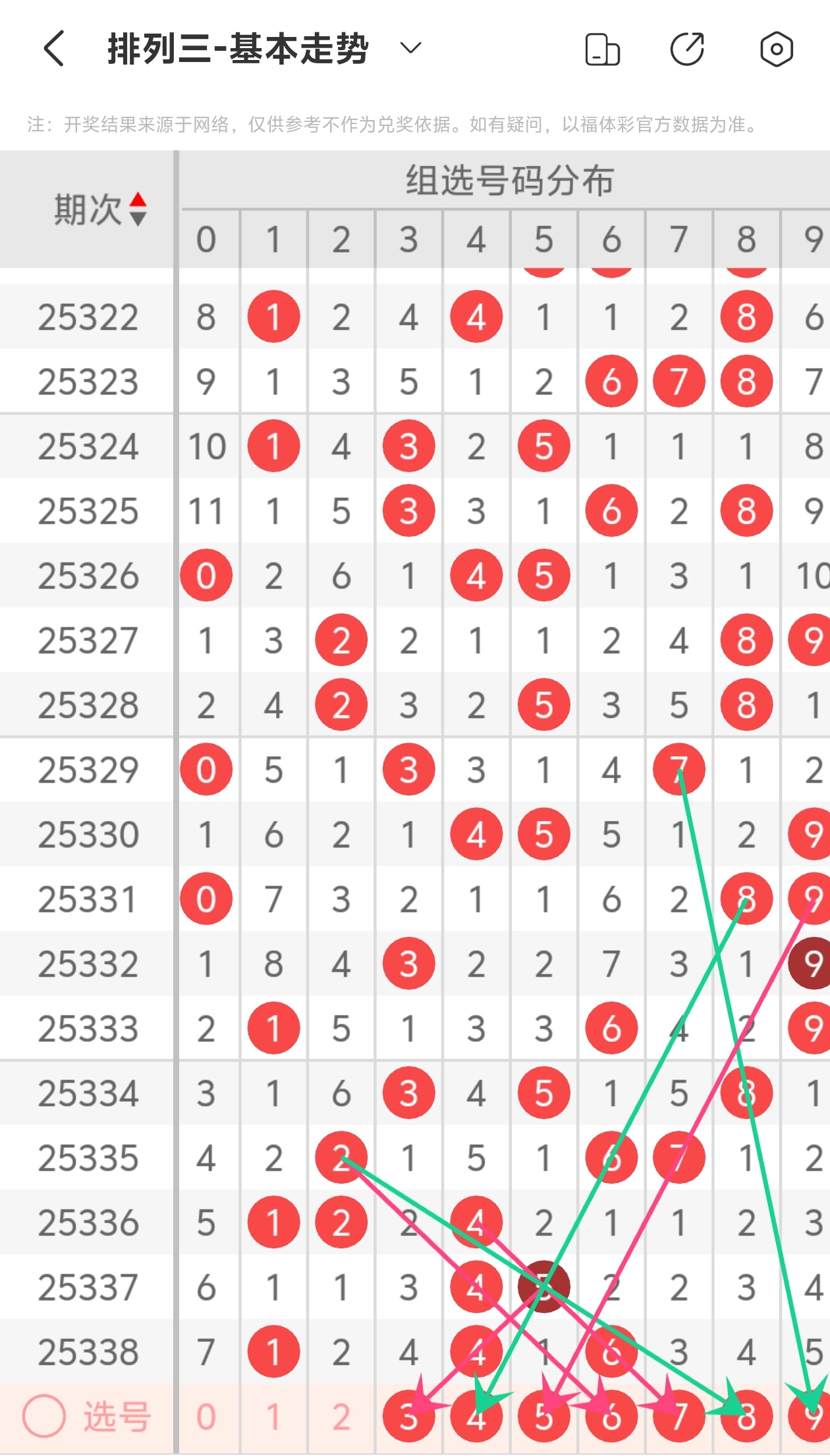 通过以上简单分析,我们看下25339期号码的定位分析: