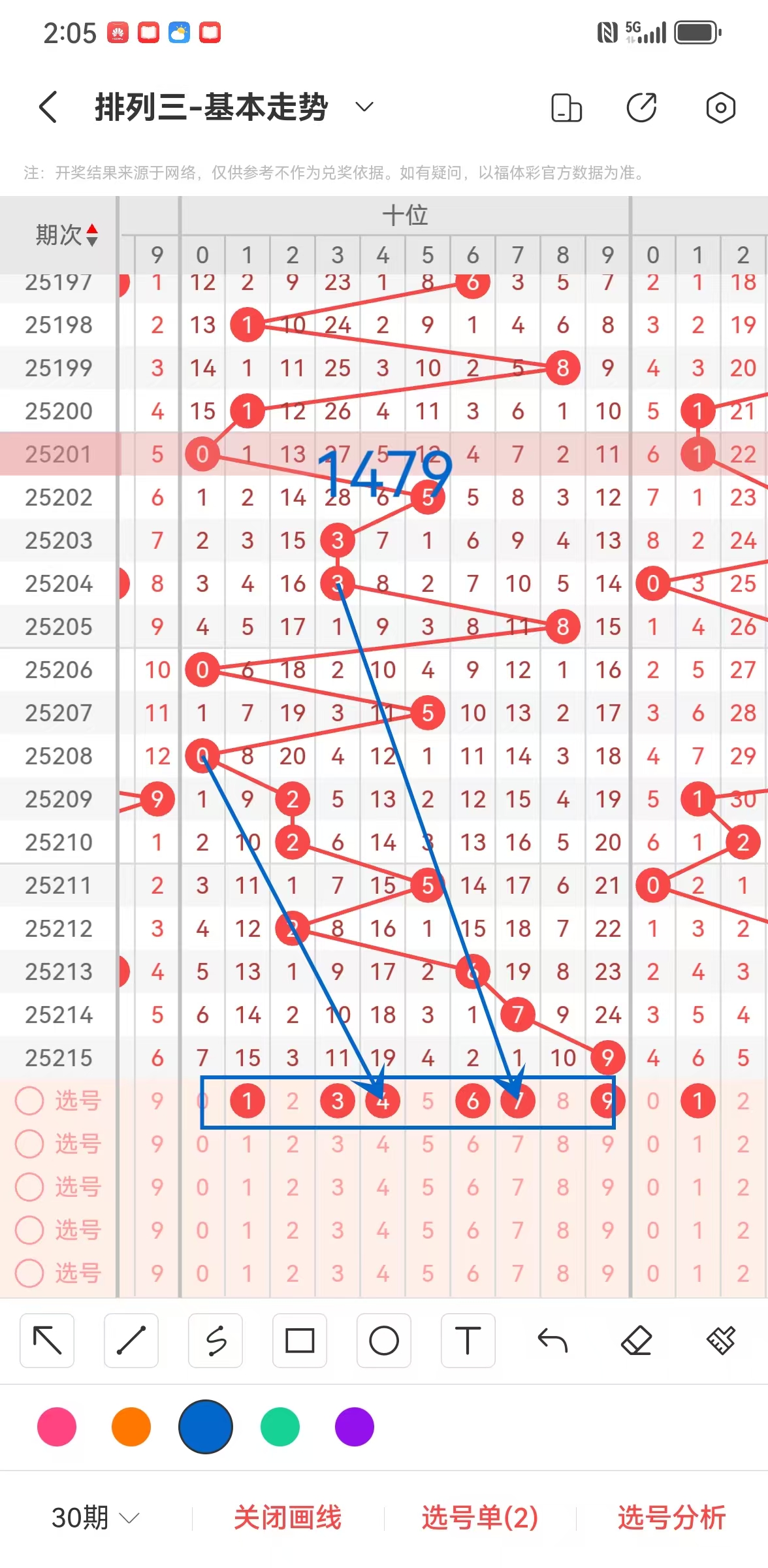 如上图所示:体彩排列三上期个位开出5为土,最近5期个位开出顺序依次为04865, 金木水火土变化为: 土-木-木-水-土,五行缺金49,火27来可得圆满,土又生金,49的确画重点,木克土,少一木3本期能否回归拭目以待,奇偶变化比为:偶奇偶偶奇,2:3,偶数开出略胜一筹,有望13579回补其一,大小变化比为:小小大大大,3:2,有望01234回补其一,