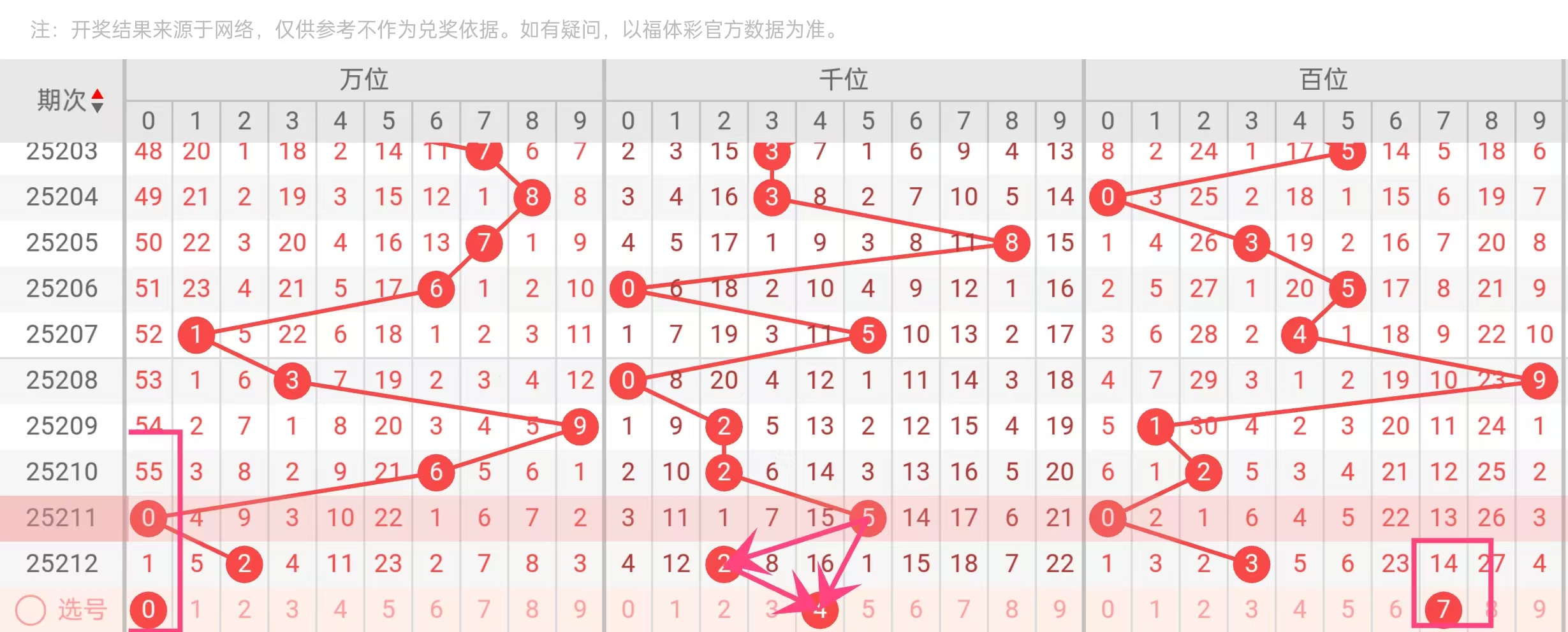 3. 个位"7":奇数在个位占比61%,"7"作为高频奇号(近50期出12次),维持热态。