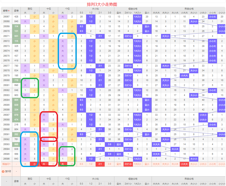 上一期012路个数比为2:1:0,是01路的号码组合,上期断掉2路的号码,本期的号码以两路的组六组合号码为主,本期0路的号码可能会出现,本期应该会有1路的号码,本期以01的组六组合号码为主,防02路和12路的组合,侧重01路的号码组合