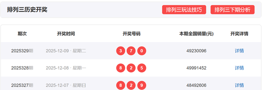 体彩排列3上一期,开奖号码为370,形态为组六,奇偶比为2:1,012路数值表现为010,和值10,和尾0,跨度7。