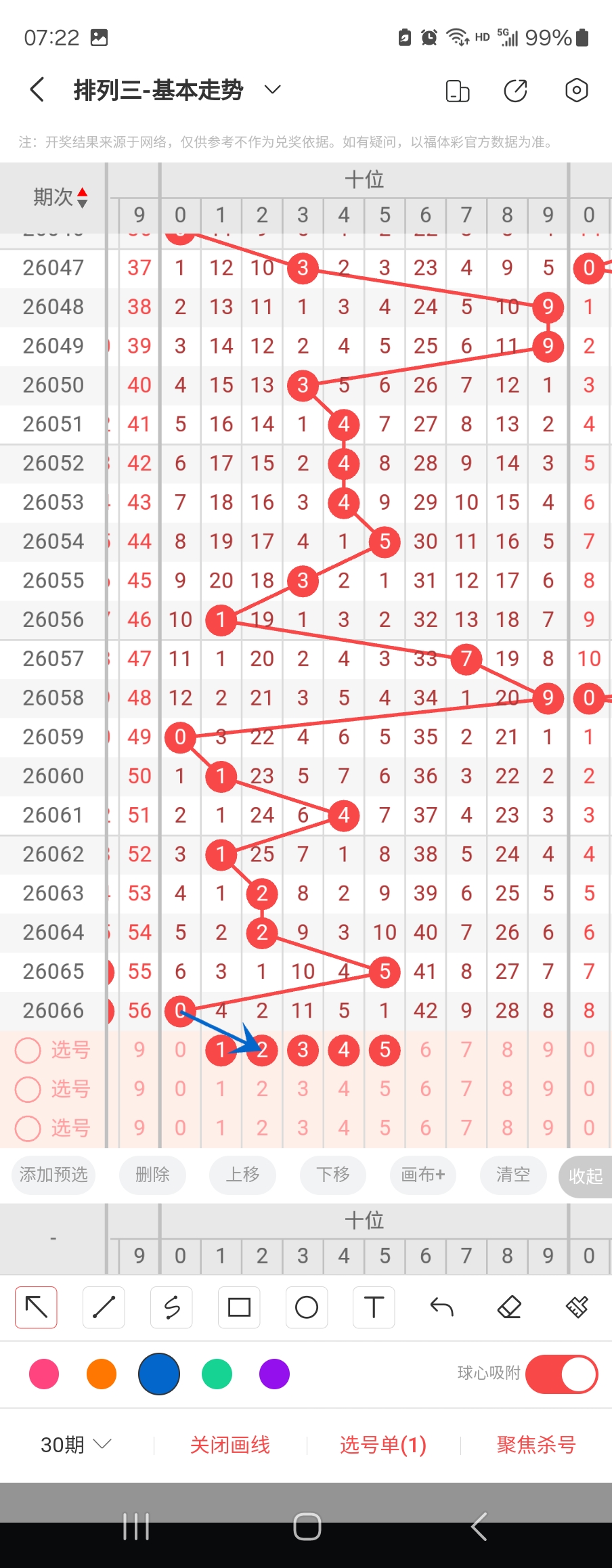 个位走势标注如下图;