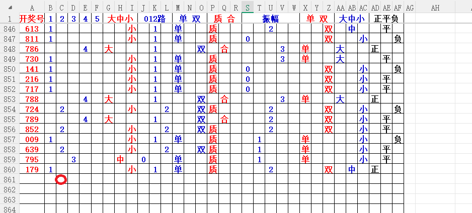 如上图56,012路分析0路出号的概率还是很大,本期可以0路号入手做胆0369中选;看好369胆码