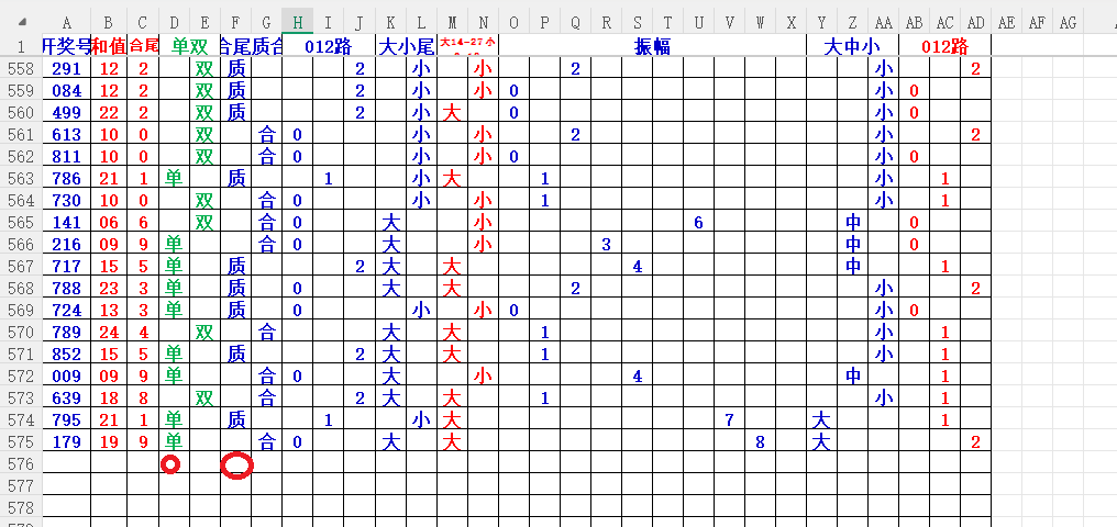 如上图2,012路分析01路尾走比较好,关注34567尾;