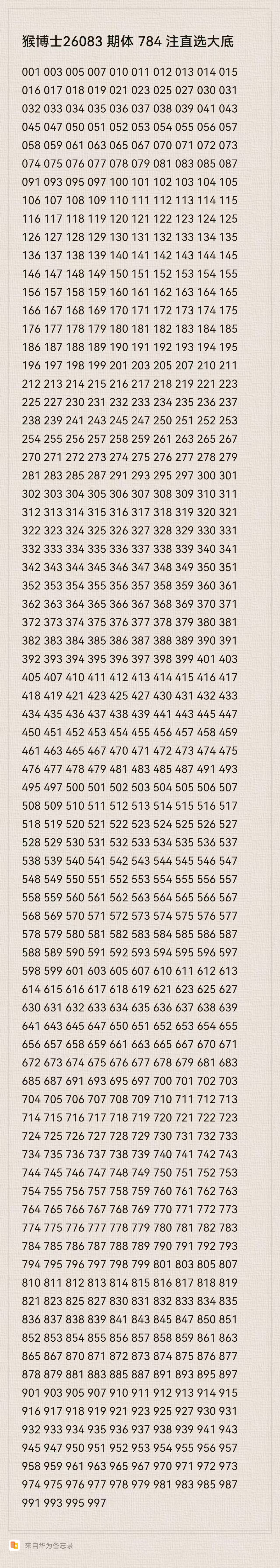 猴博士26083期排列三784注直选大底:(可以当母底用,然后进行缩水)