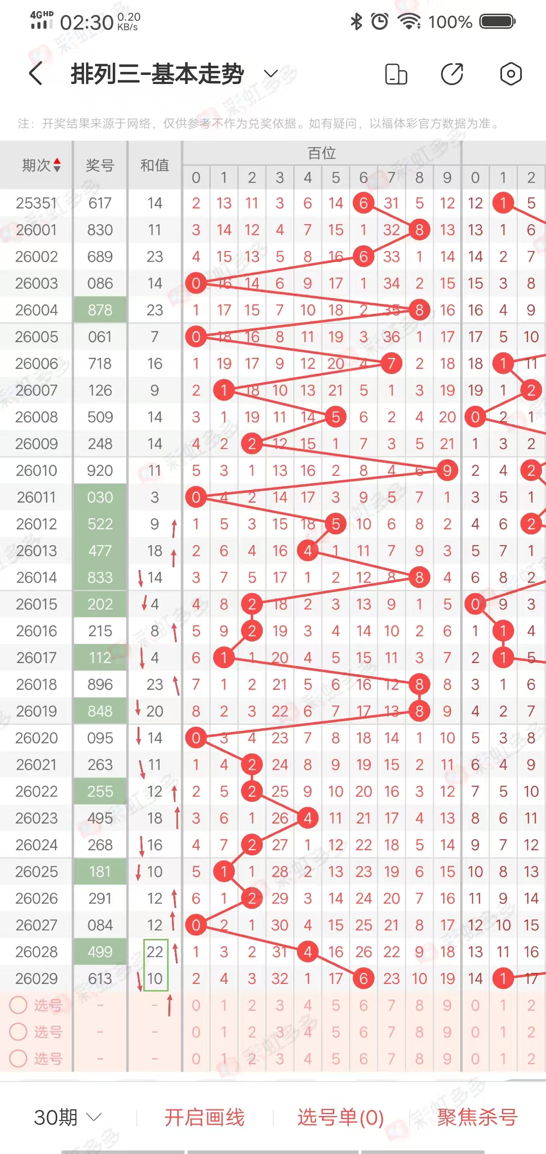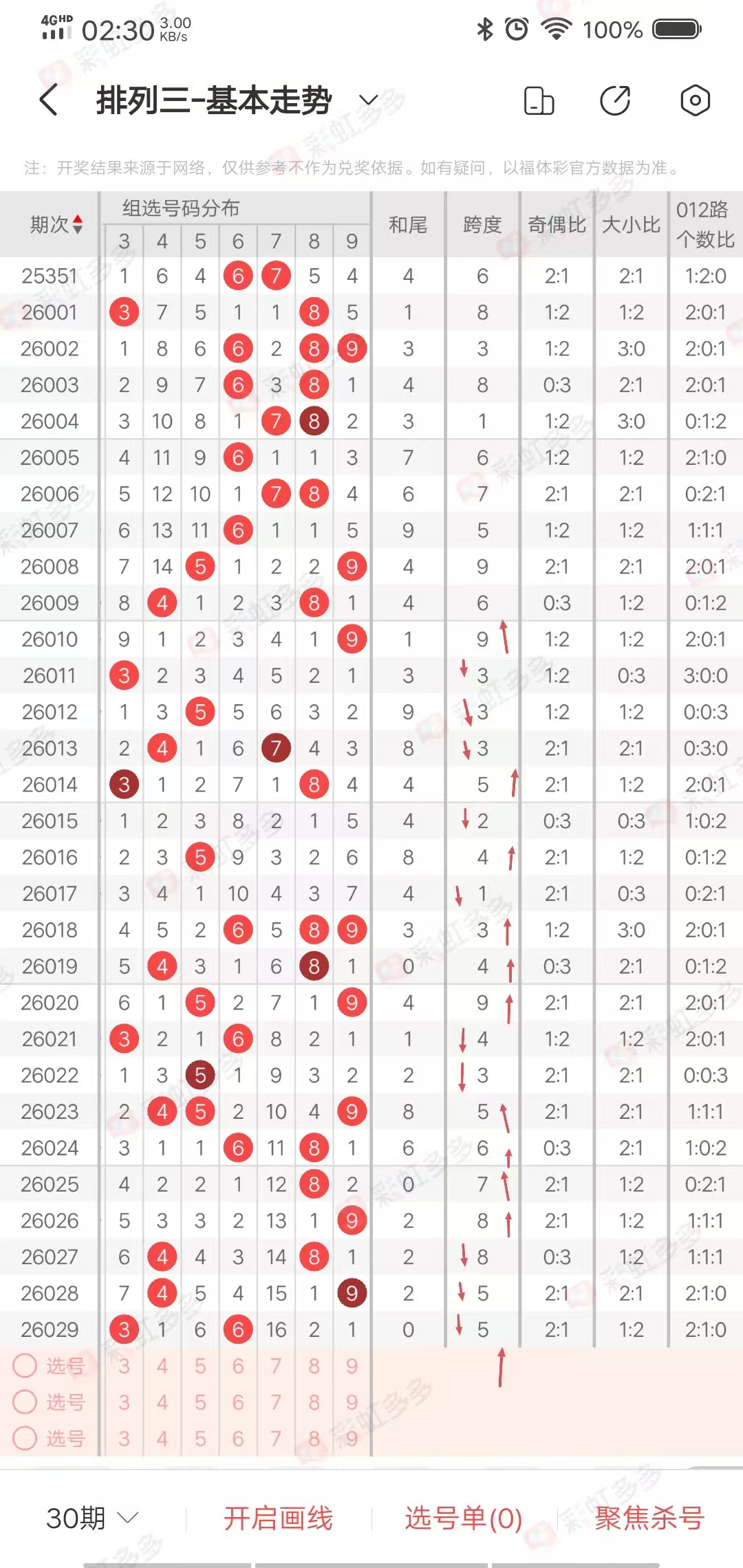 从走势图可以看出,近期和值尾上下幅度-3➕2➕6-1-4-0➕4-4-1-3➕4-3➕1➕6-2-6➕2➕0-0-2,近期上下幅度6,近15期有连续上下走势,上期下降,本期有上升走势,综合和尾24865,