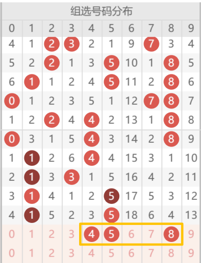 百位:强制包含三胆 5、4、8,排三定位基础;剔除上期重复对子 1,彻底规避组三;大小 5 大 2 小,奇偶 3 奇 4 偶,完美匹配 1 奇 2 偶、2 大 1 小;凸形态核心位,覆盖中间大号区间