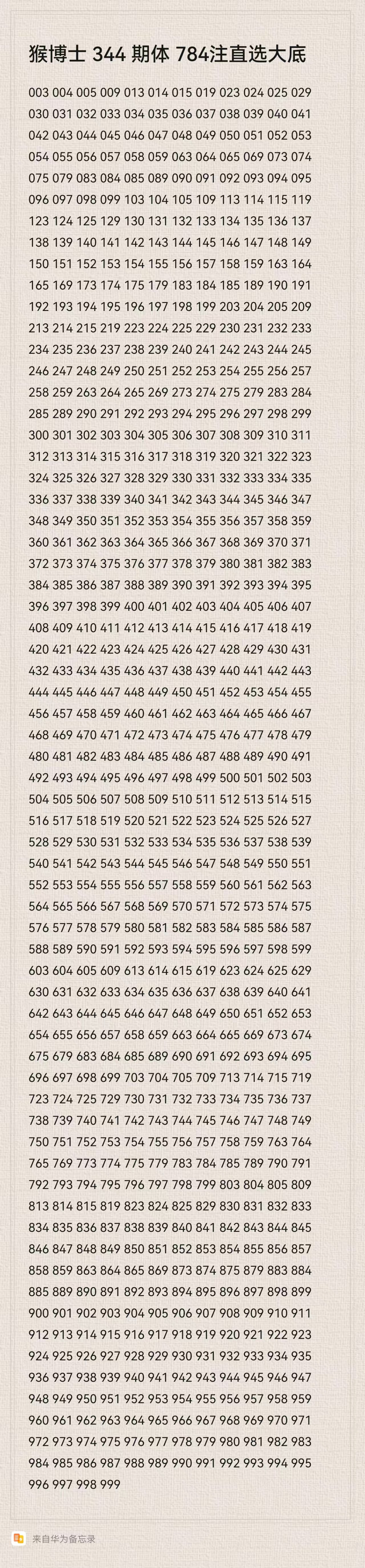 猴博士344期排列三784注直选大底:(可以当母底用,然后进行缩水)
