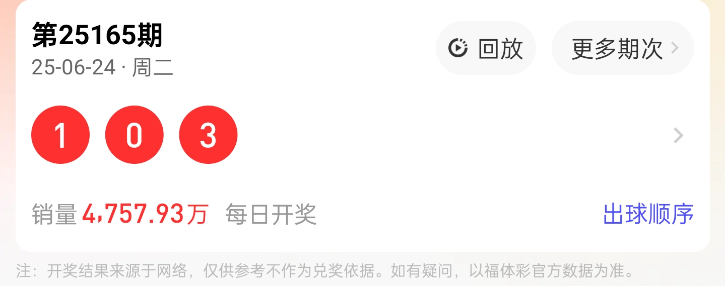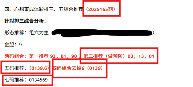 四、心想事成体彩排三、五综合推荐(2025166期)