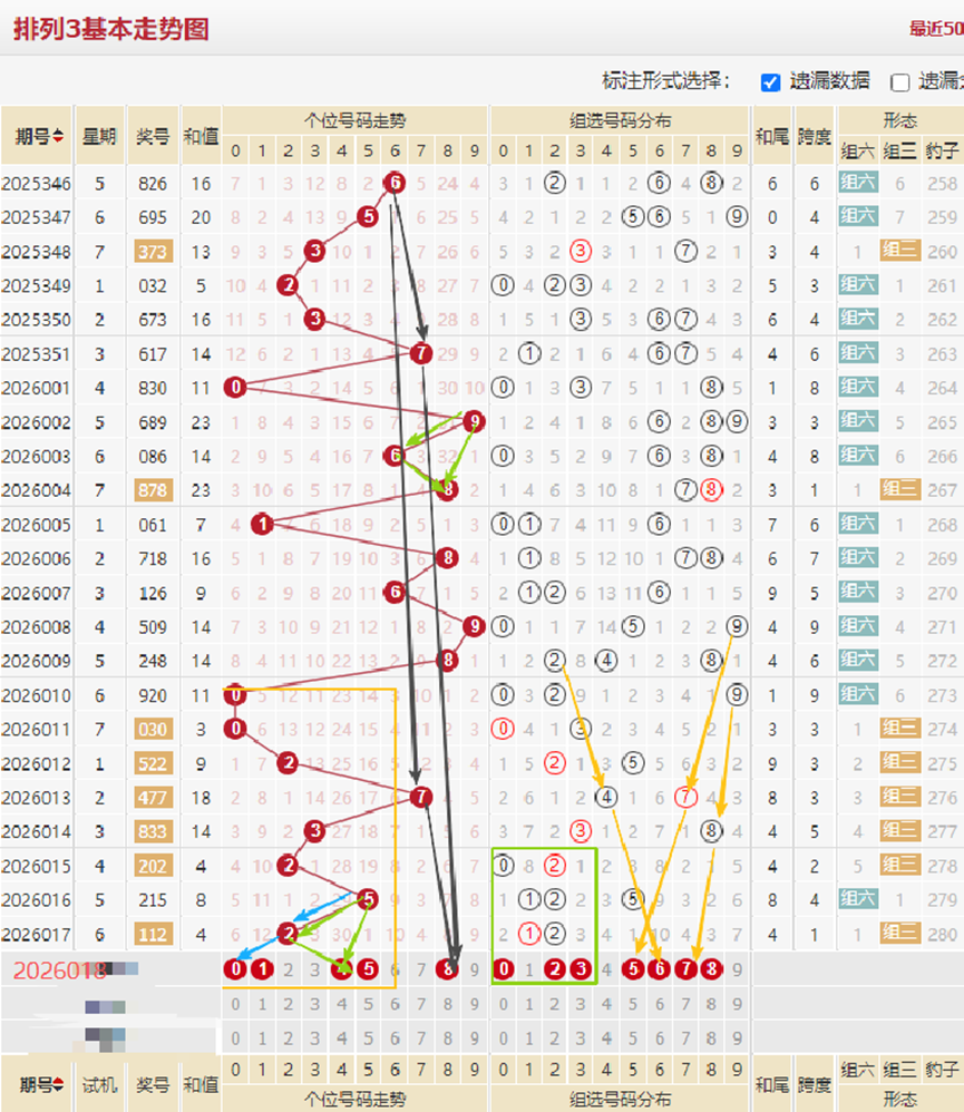 组号分布:从走号分布图绿色框里可以看出小号数占优,大号急需回补,本期个人看好两大一小和全大。
