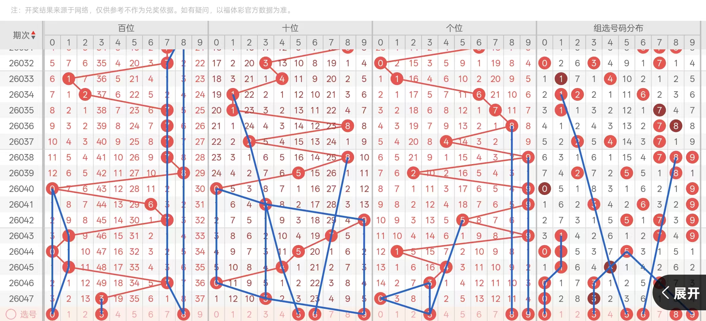 首先百位我们需要考虑形态号码回补,以及冷态号码的联动做重,所以本期百位号码可考虑0-3-8三码,那么其余号码均防守为主,主要考虑该三码即可。