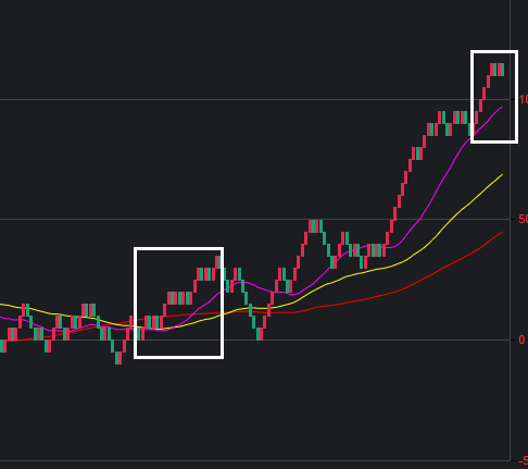 可以看到一些规律,在白框中,如果一致,那么接下来这些跨度也会出。