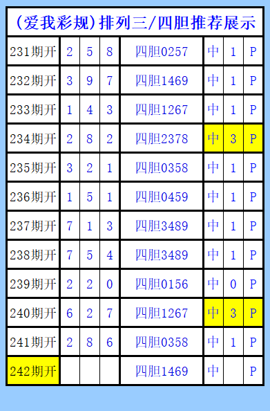 排列三第242期图文(爱我彩规),四胆推荐展示