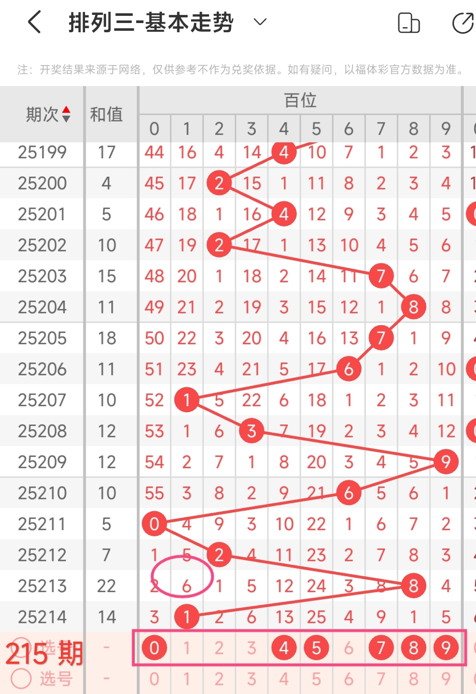 金莱排列3第215期:上期中银胆6,本期和值看双