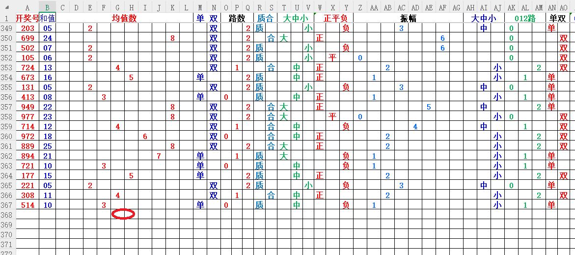 如上图1,大中小分析,均值小中大数比较好,也就是 3456 均值最好,重点:345。