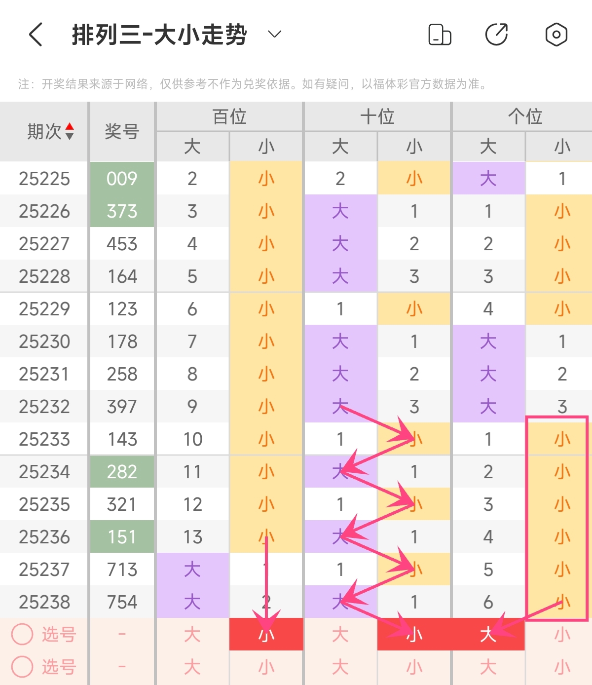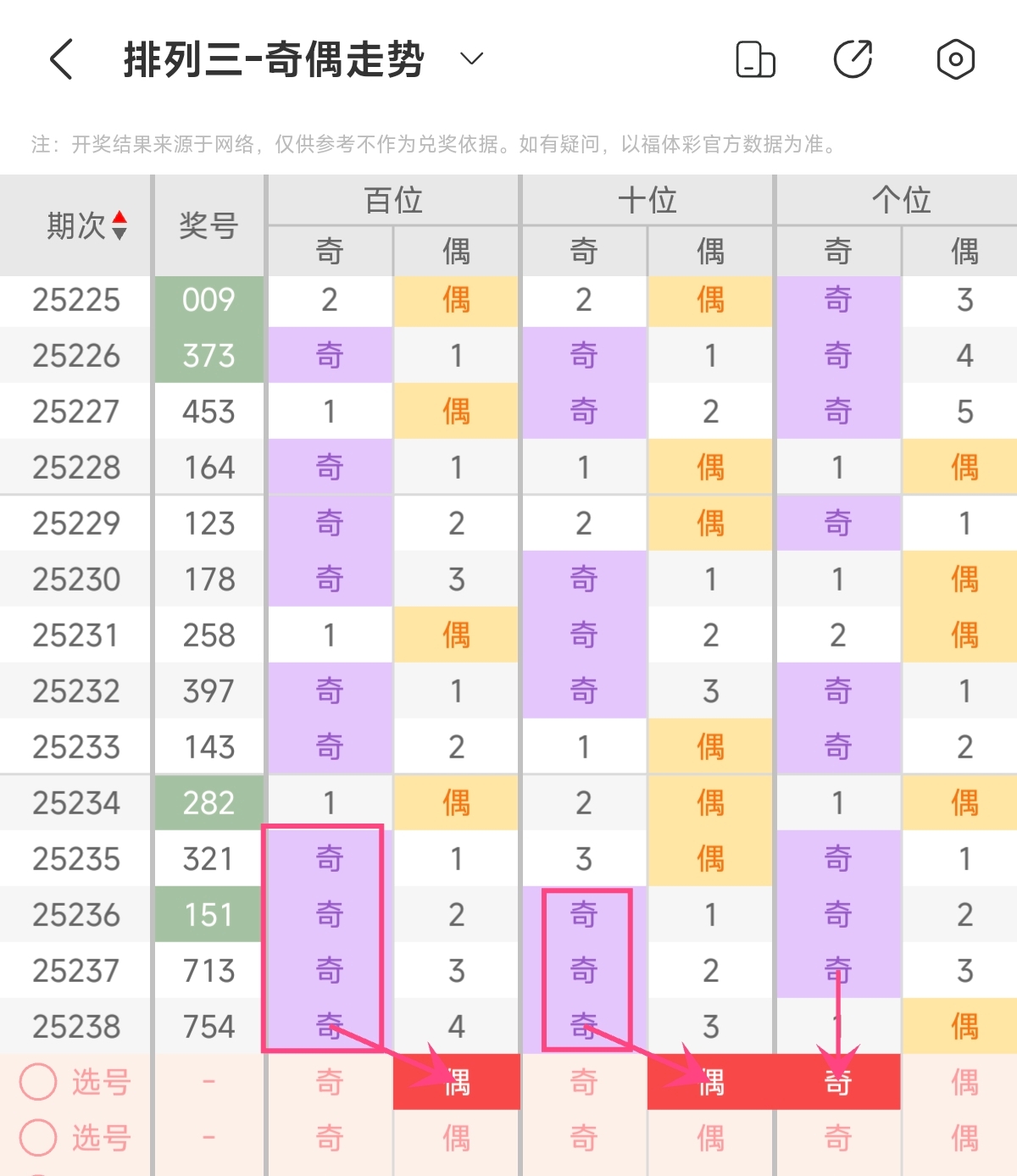 首先让我们回顾一下上期排列3第2025238期开奖号码为754,为组六形态,大小比为2:1,奇偶比为2:1,和值为16,跨度为3。