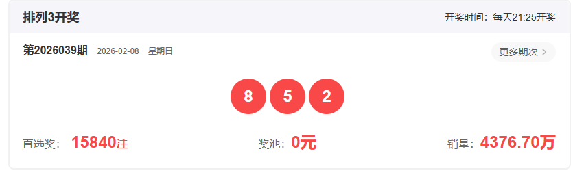 1. 基本形态分析 本期开出 852,呈现为“大大小”的格局。从奇偶看,为“偶奇偶”(1:2);从质合看,为“合质质”(2:1);从大小看,为“大大小”(2:1)。