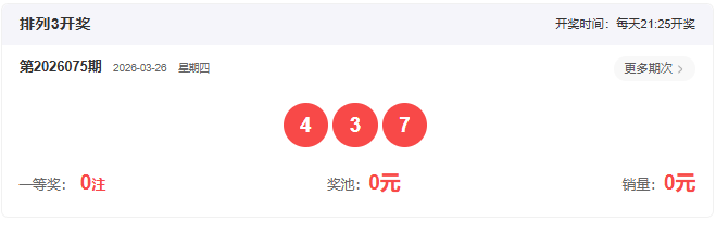 2026075期开奖号码: