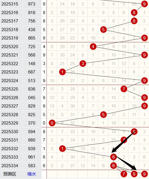 上期和尾为6,近5期和尾开出情况:第25330期开出8,属于偶数,2路号码,木属性;第25331期开出7,属于奇数,1路号码,火属性;第25332期开出1,属于奇数,1路号码,水属性;第25333期开出6,属于偶数,0路号码,水属性;第25334期开出6,属于偶数,0路号码,水属性;