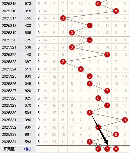上期开奖号码为:583,组六型态,和尾为6,跨度为5,直接看文末胆码大底!