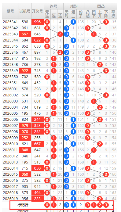 排列三第020期:上期连号成对凹凸分析命中,大小分析命中