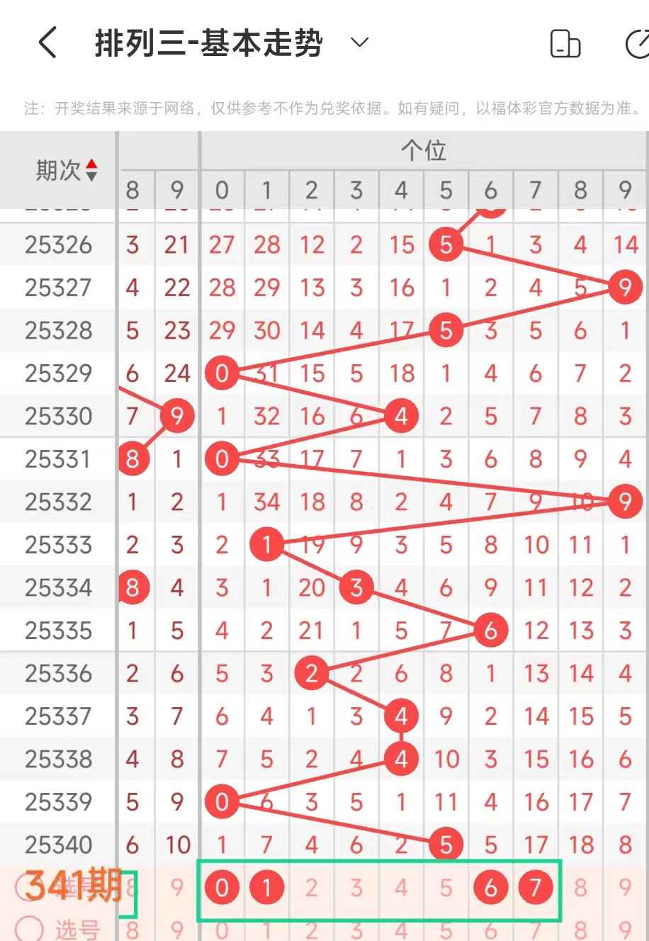 近10期开奖遗漏值分别 4 34 9 9 21 6 0 7 11,奇偶属性分别为:偶偶奇奇奇偶偶奇奇,奇后可能出奇,而奇数遗漏值的有0167,本期不妨考虑一下。