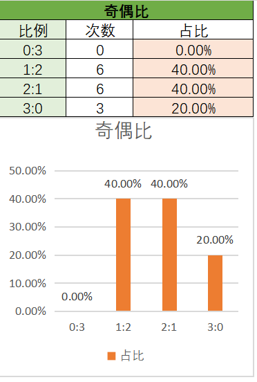 上期是组六类型,其中组六占比变大,组三占比变小。纵观最近15期形态,组六还是最热门的,开了10其次是组三,开了5期。所以本期还是优先考虑组六防组三。