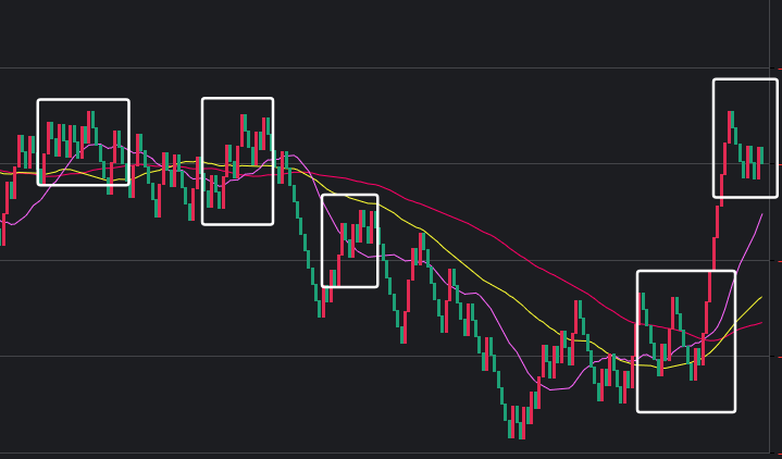 可以看到一些规律,在白框中,如果一致,那么接下来这些跨度也会出。