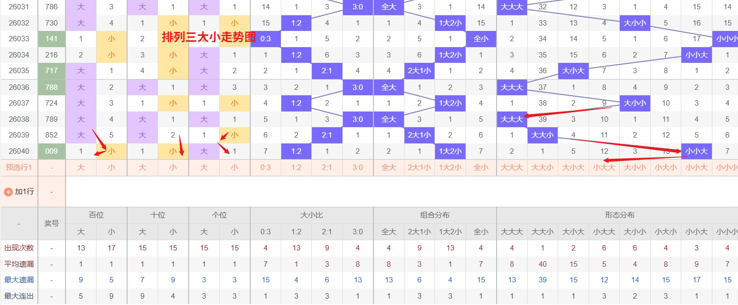 排列三大小走势图