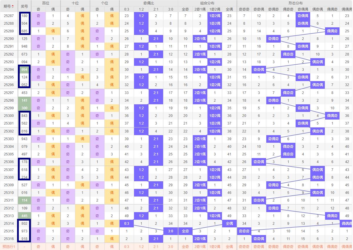 奇偶比例预判 在奇偶比例方面,第316期开出了918奇奇偶的组合,显示出奇数号码的强势。然而,根据奇偶比例的自然平衡原理,偶数号码在第317期有望得到更多的关注。因此,317期的奇偶比例可能为1:2,即偶数号码占据多数。这种预判基于对历史数据的深入分析,以及对奇偶比例波动规律的把握。奇偶比例为1:2.近十期奇偶比为15:15.关注两偶一奇号码。