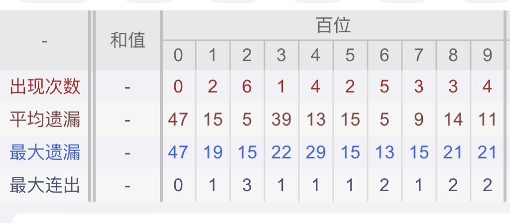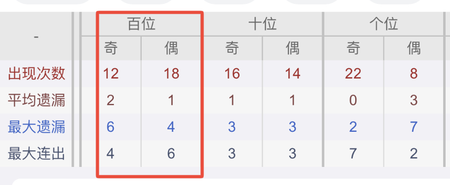 从近30期数据我们可以看出百位26是热码,这个冷热码数据我们结合之后的分析再利用它