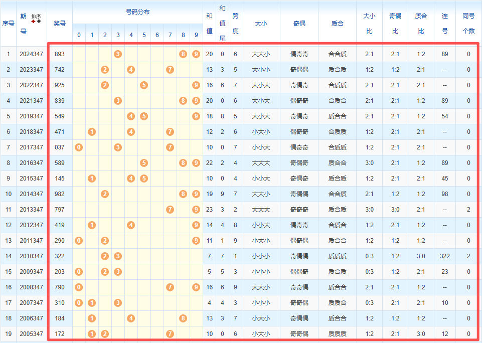 本文分别通过三个方面对本期排列三进行深度分析,这三个方面分别为:一:历史追随、二:往年同期数据、三:近期百十个遗漏值情况。