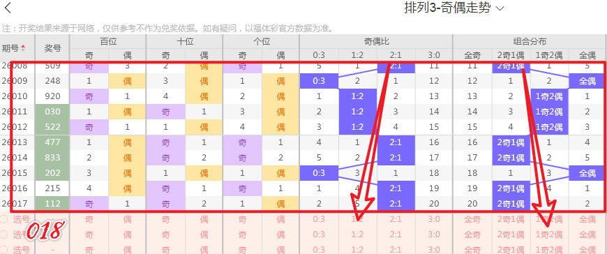 复盘后的奇偶走势。2-3个奇数的组合偏多。本期继续看好2期1偶组合,13579=2;