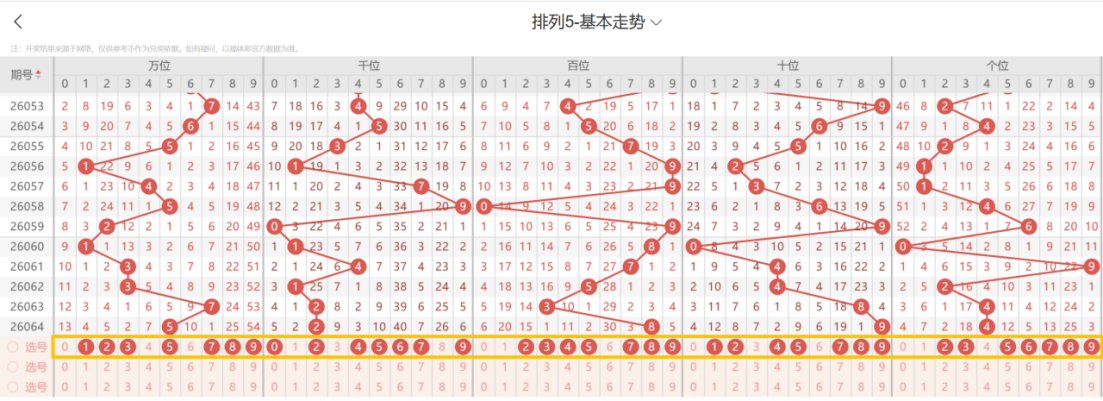 千位:上期千位开 2,热码 2 直落;搭配 4、5、9 全位温热码,7 为奇数回补核心,适配排三十位均衡走势,补充 0、6 偶数温码,保留 2、4、5、7、9 核心码,奇偶、大小双向均衡,完美适配排五千位出号特征。