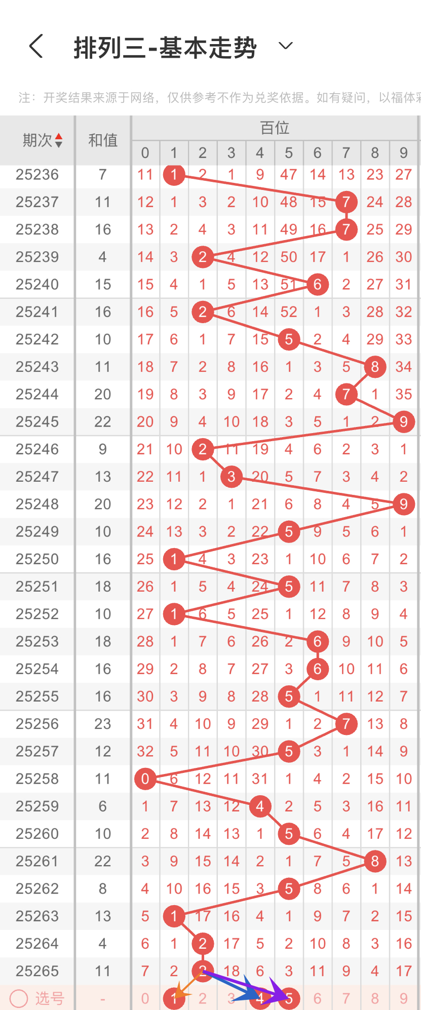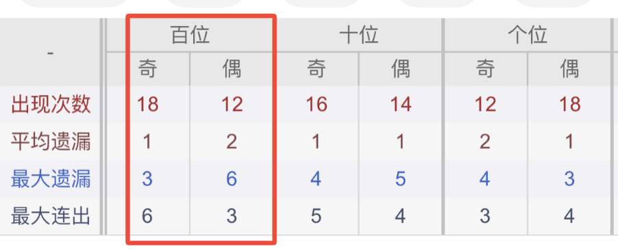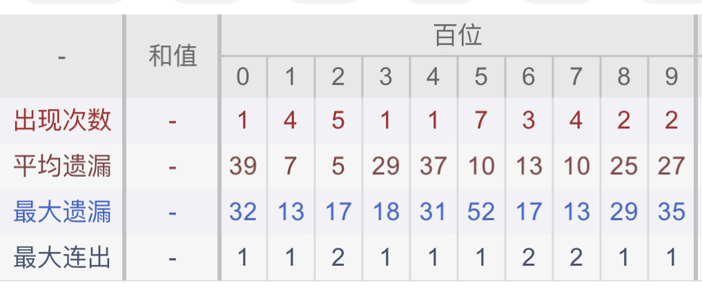 从近30期数据我们可以看出百位1257是热码,这个冷热码数据我们结合之后的分析再利用它