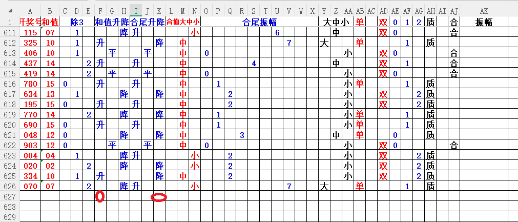 如上图3,和值升平降分析,和值降的概率大,大于07和值。