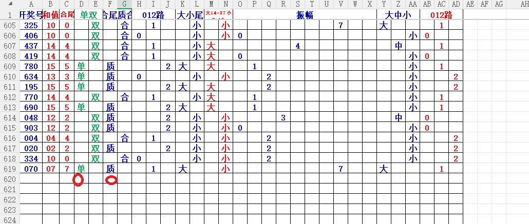 如上图2,012路分析01路尾走比较好,关注3456尾;