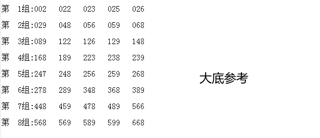 三、本期号码组号参考: