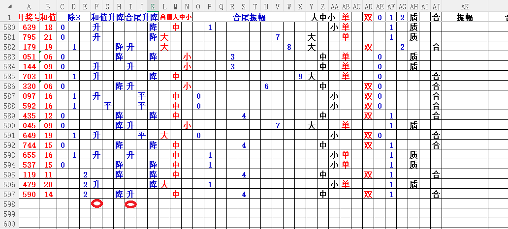 如上图2,大中小分析来看,中小数尾3456尾,可以考虑定345尾。