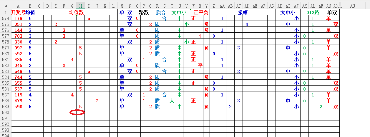 如上图1,大中小分析,均值小中大数比较好,也就是 3456 均值最好,重点:45。