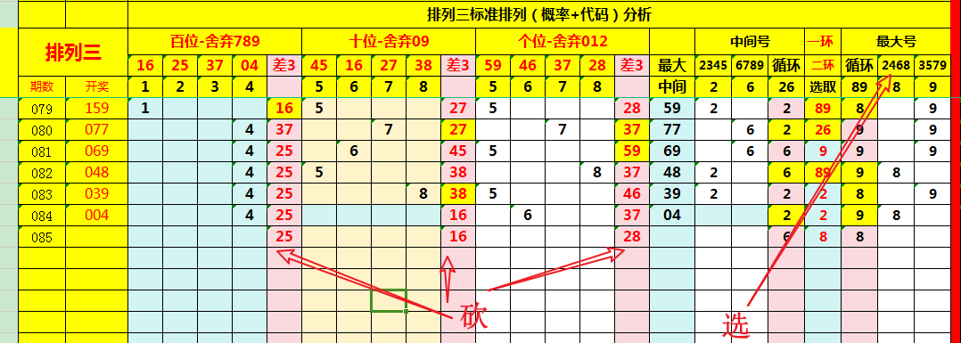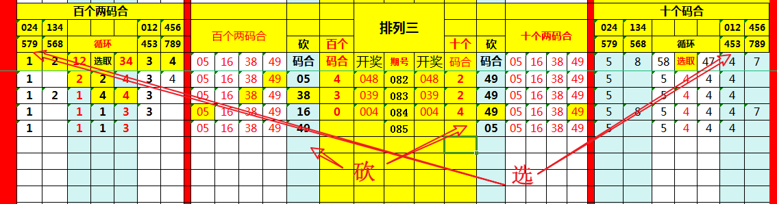 再观“两码合值”,此乃关键。其要旨在于百位加十位、十位加个位,取其和值之尾数。此步至关重要,可如沙里淘金,剔除诸多不靠谱的“垃圾组合”。 复盘数据,构建表格如(图):