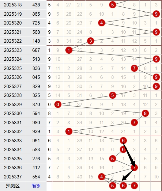 上期跨度为1,近5期跨度开出情况:第25333期开出8,属于偶数,2路号码,木属性;第25334期开出5,属于奇数,2路号码,土属性;第25335期开出5,属于奇数,2路号码,土属性;第25336期开出3,属于奇数,0路号码,木属性;第25337期开出1,属于奇数,1路号码,水属性;