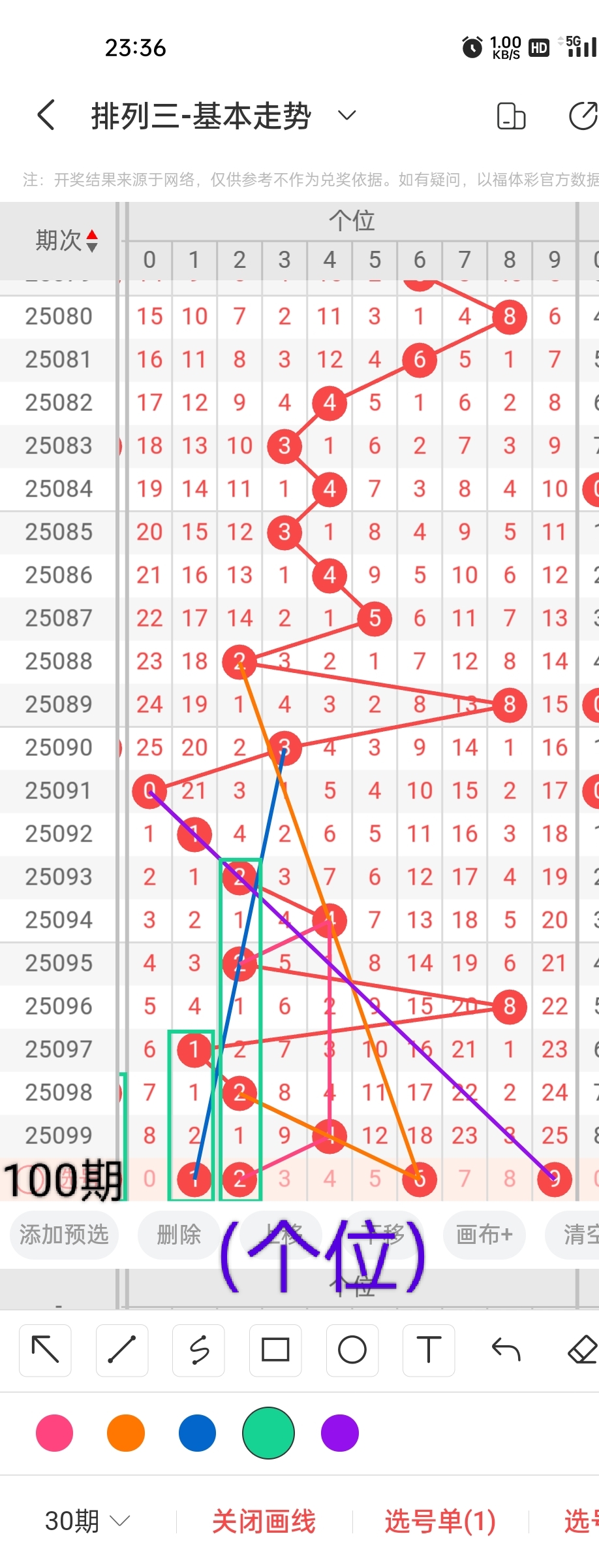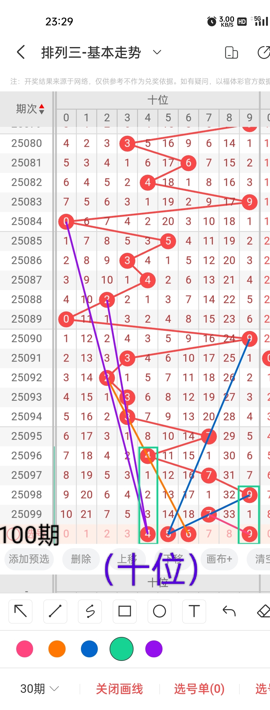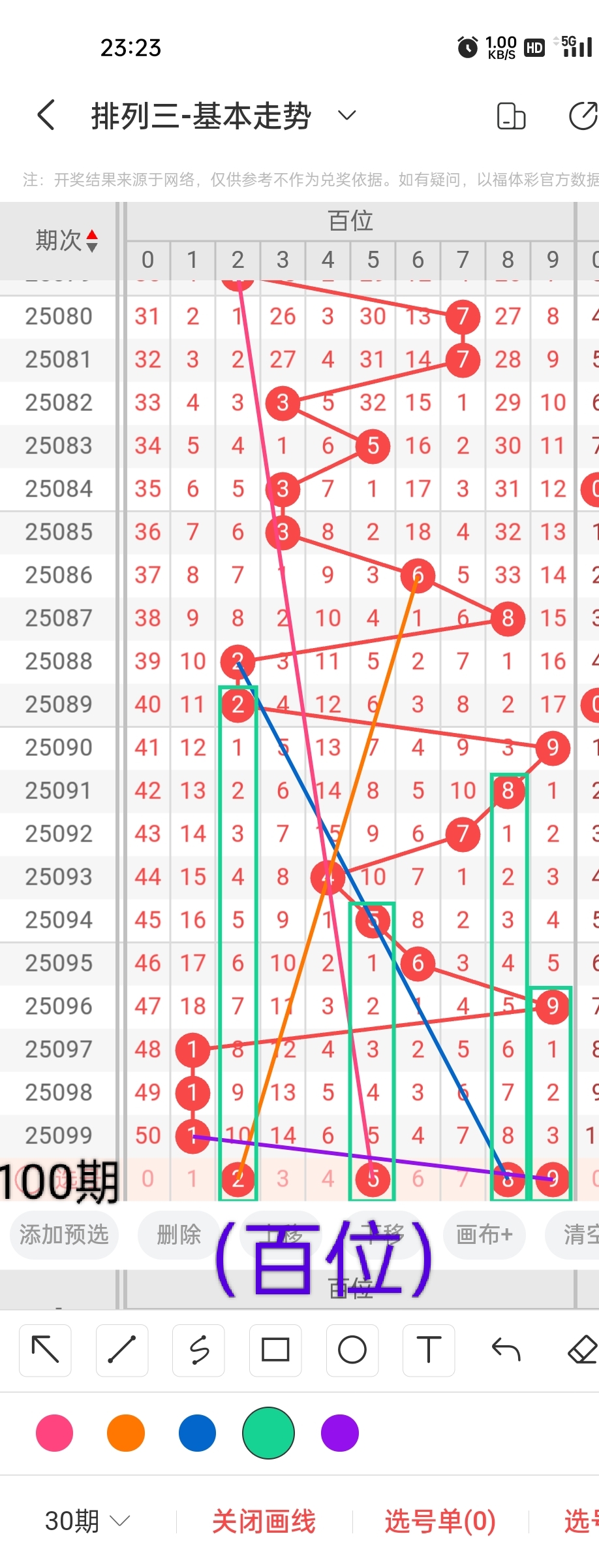 通过以上对上期的简单回顾,下面进入体彩排列三第2025100期(下面简称本期)的选号分析: