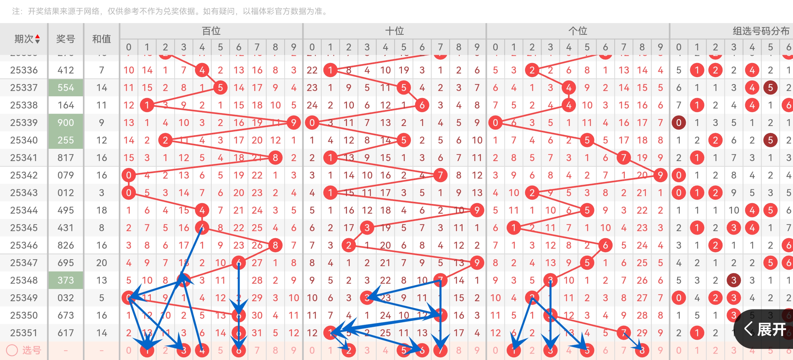 近期跨度范围:2~9近期跨度趋势:3、4、5、6(高频跨度)推荐跨度:3、4、5(近期跨度5出现较多)