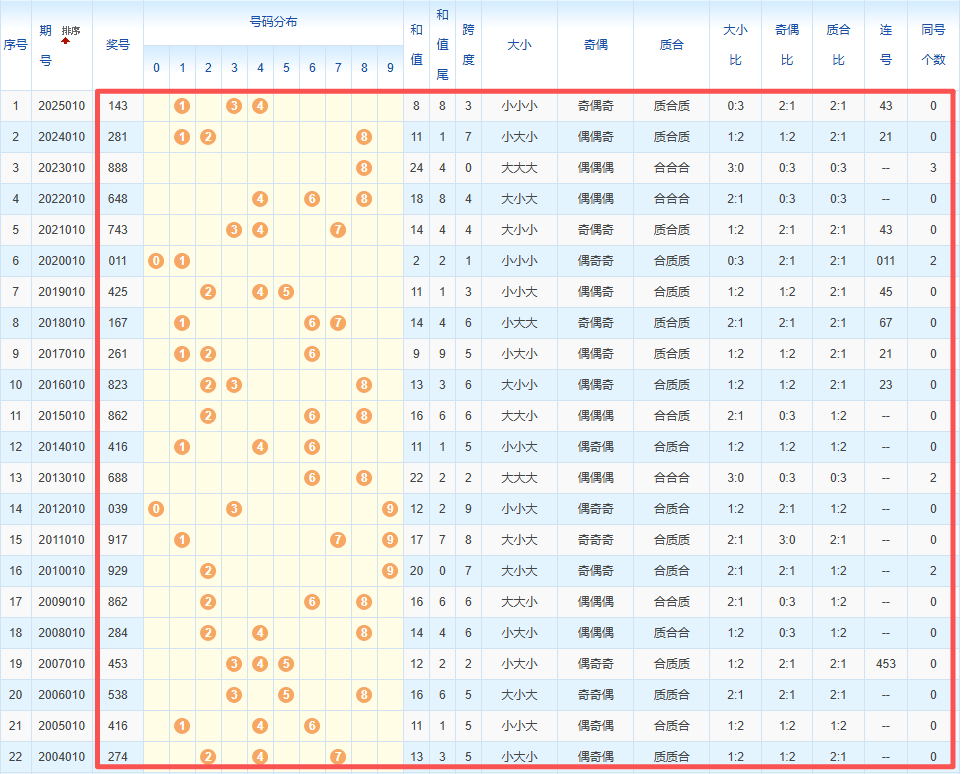 本文分别通过三个方面对本期排列三进行深度分析,这三个方面分别为:一:历史追随、二:往年同期数据、三:近期百十个遗漏值情况。