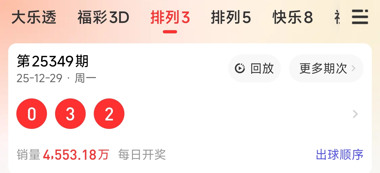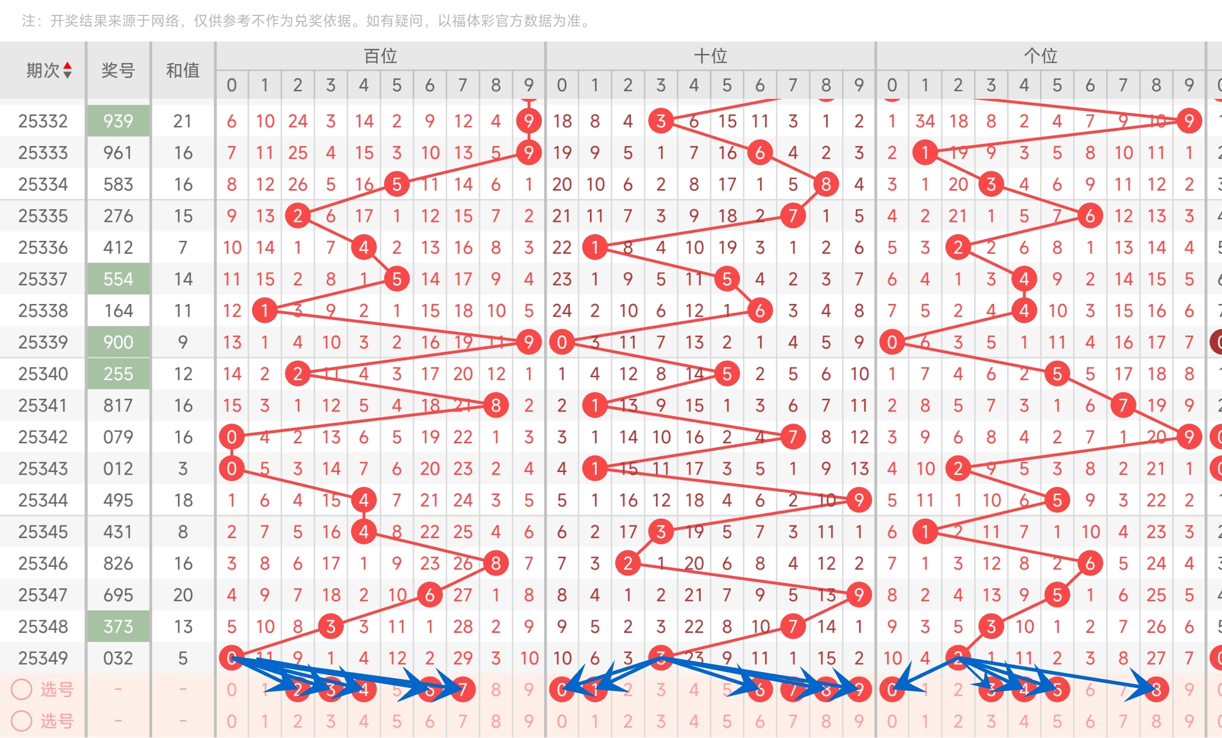 上期排列3开出0323,和尾为5,跨度为3,奇偶比为1:2,大小比为0:3012路个数对比为2:0:1