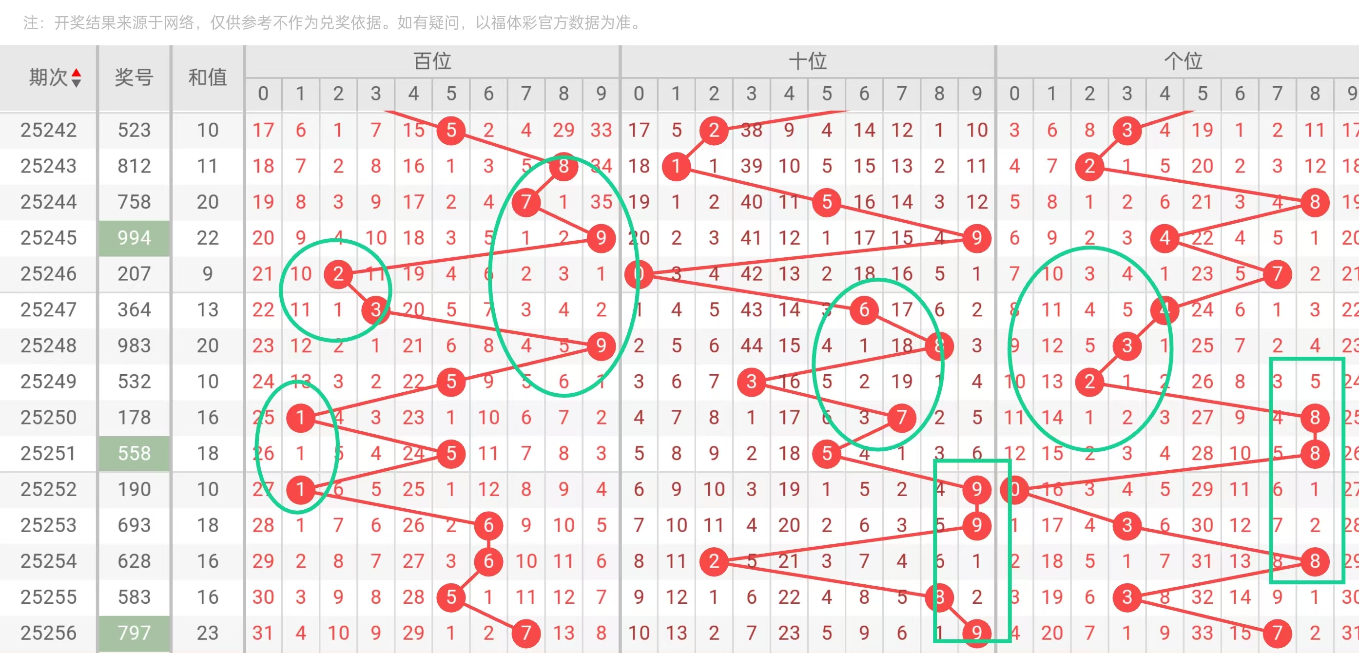 百位数字是奖号的第一个数字,其出现规律对整体趋势有较大影响。从提供的数据文件来看,百位数字3的出现频率在历史记录中大致符合理论概率,但通过细致分析近期数据,可以发现号码3在百位上的表现呈现“过热”迹象,导致中排除它。