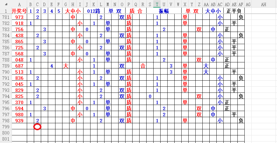 如上图7,012路分析-1路出号的概率还是很大,本期可以从1路号入手4代表78。